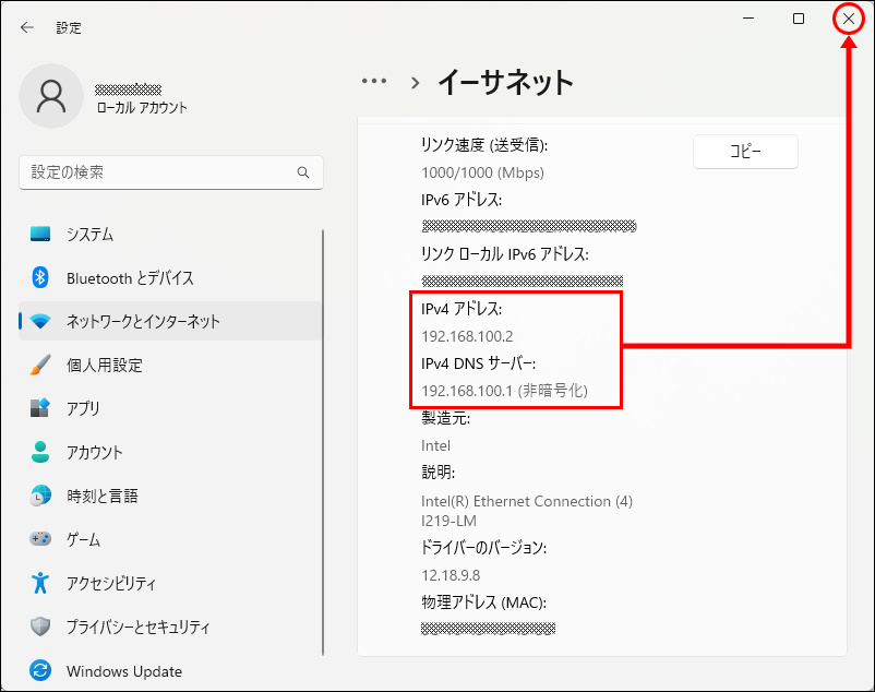 | 接続機器 | IPv4アドレス | IPv4 DNSサーバー |