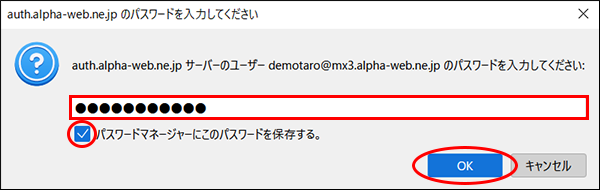 ※パスワードを保存する場合は「パスワードマネージャーにこのパスワードを保存する」にチェックを入れます。